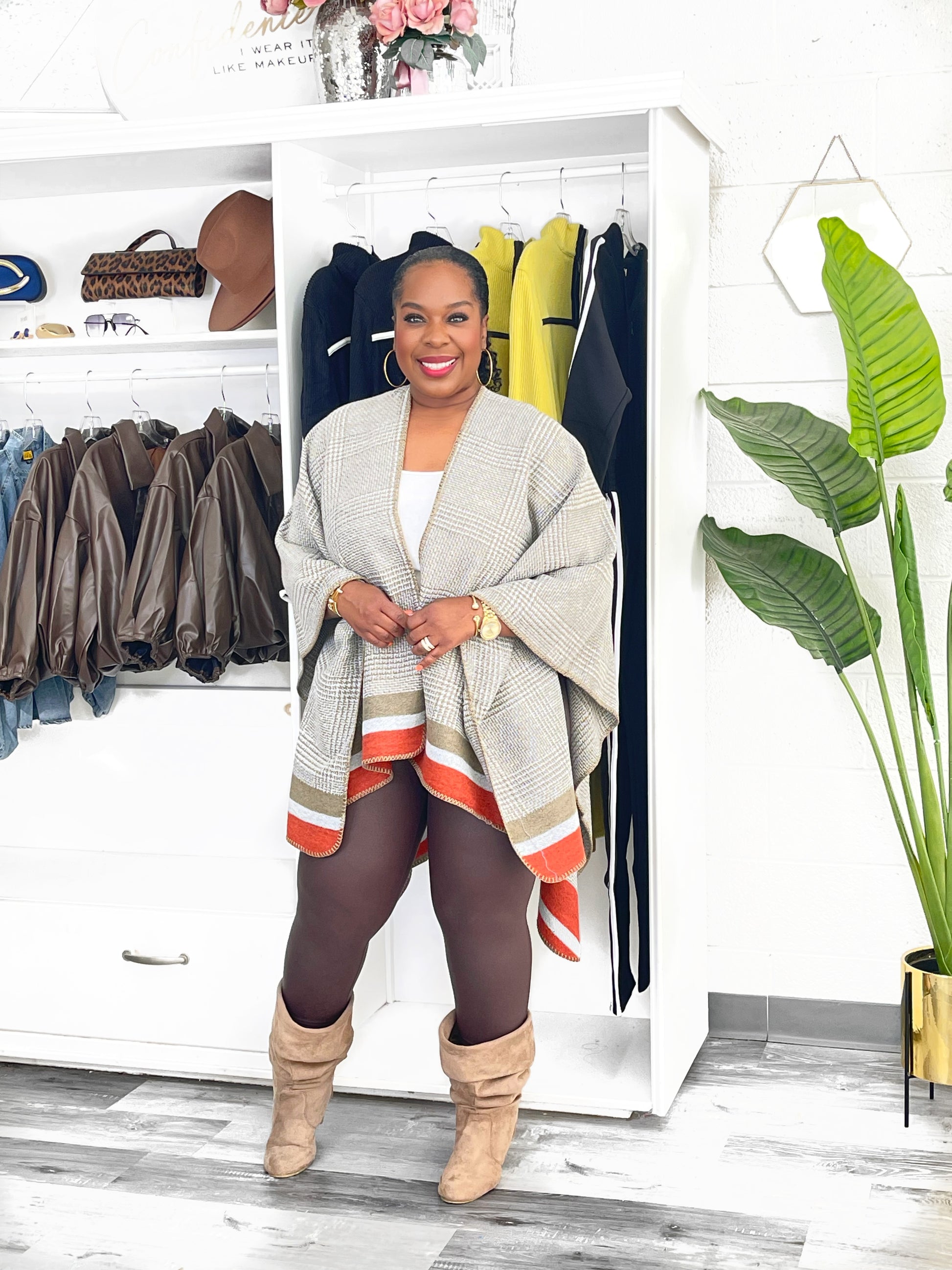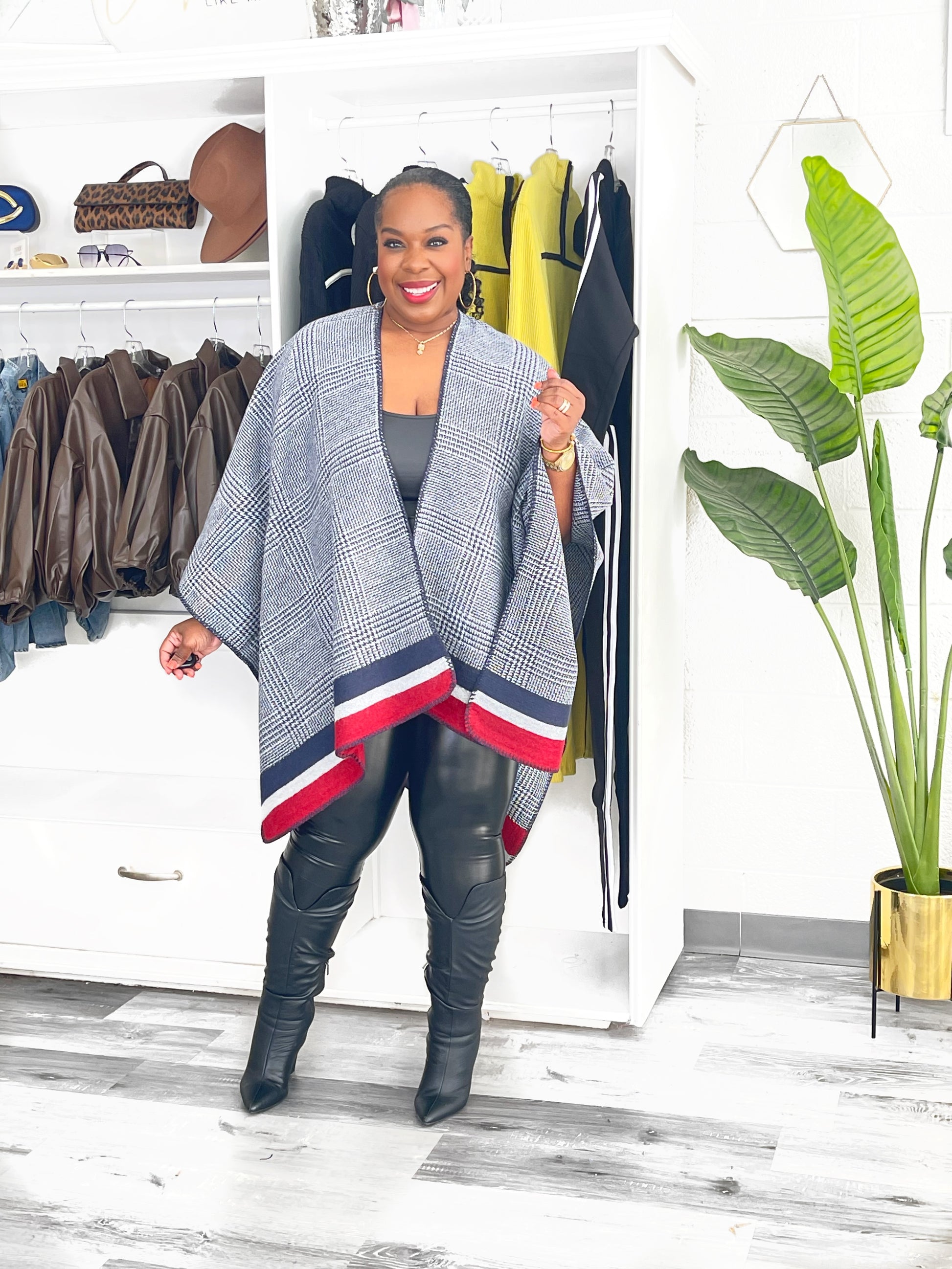Layer up in style with the Callie—a cozy plaid jacquard poncho that's perfect for throwing over anything. Woven with a fuzzy finish, this versatile piece adds warmth and texture to your everyday look. Whether you're heading out or settling in, it's the effortless way to stay snug and chic.