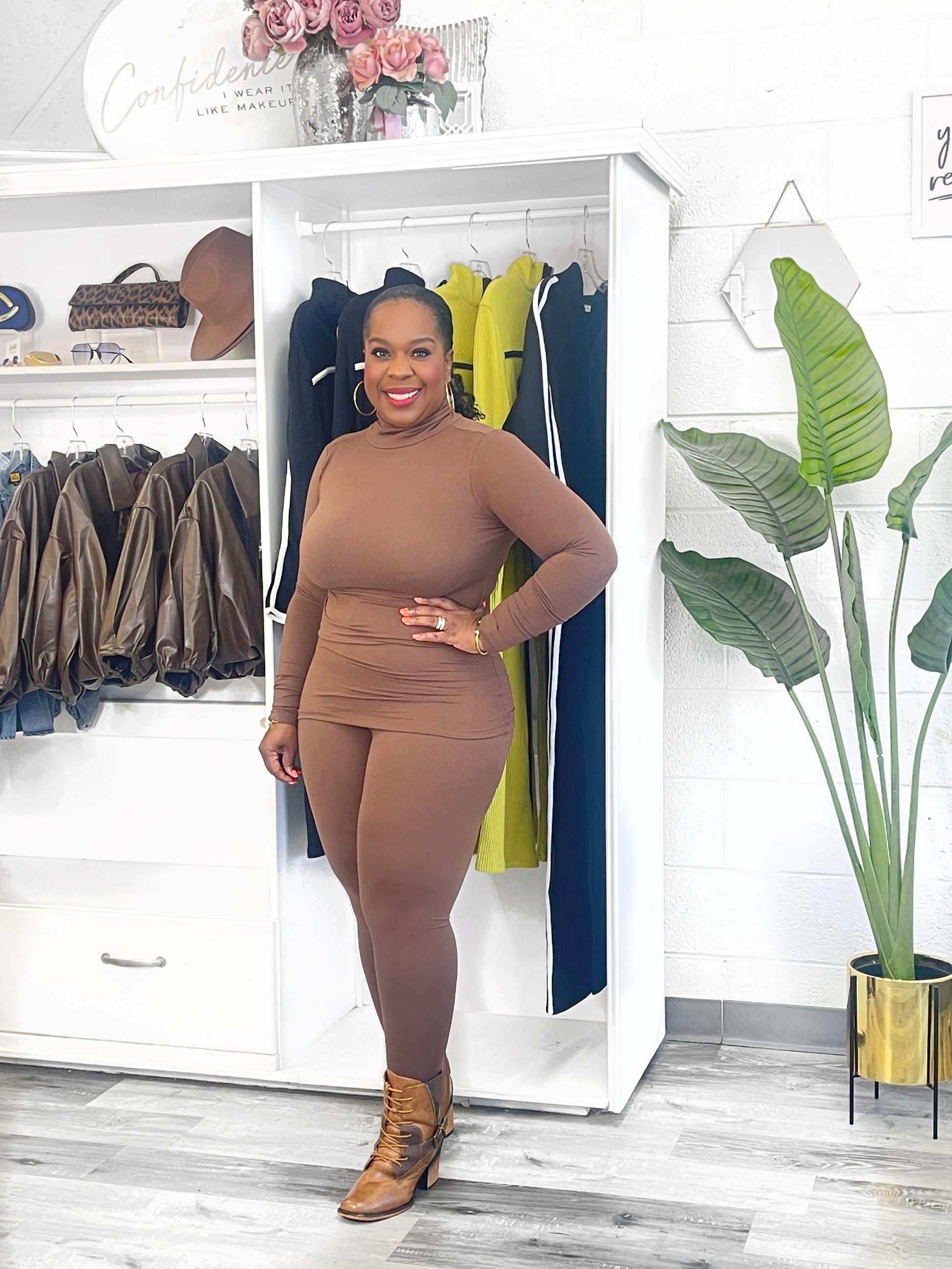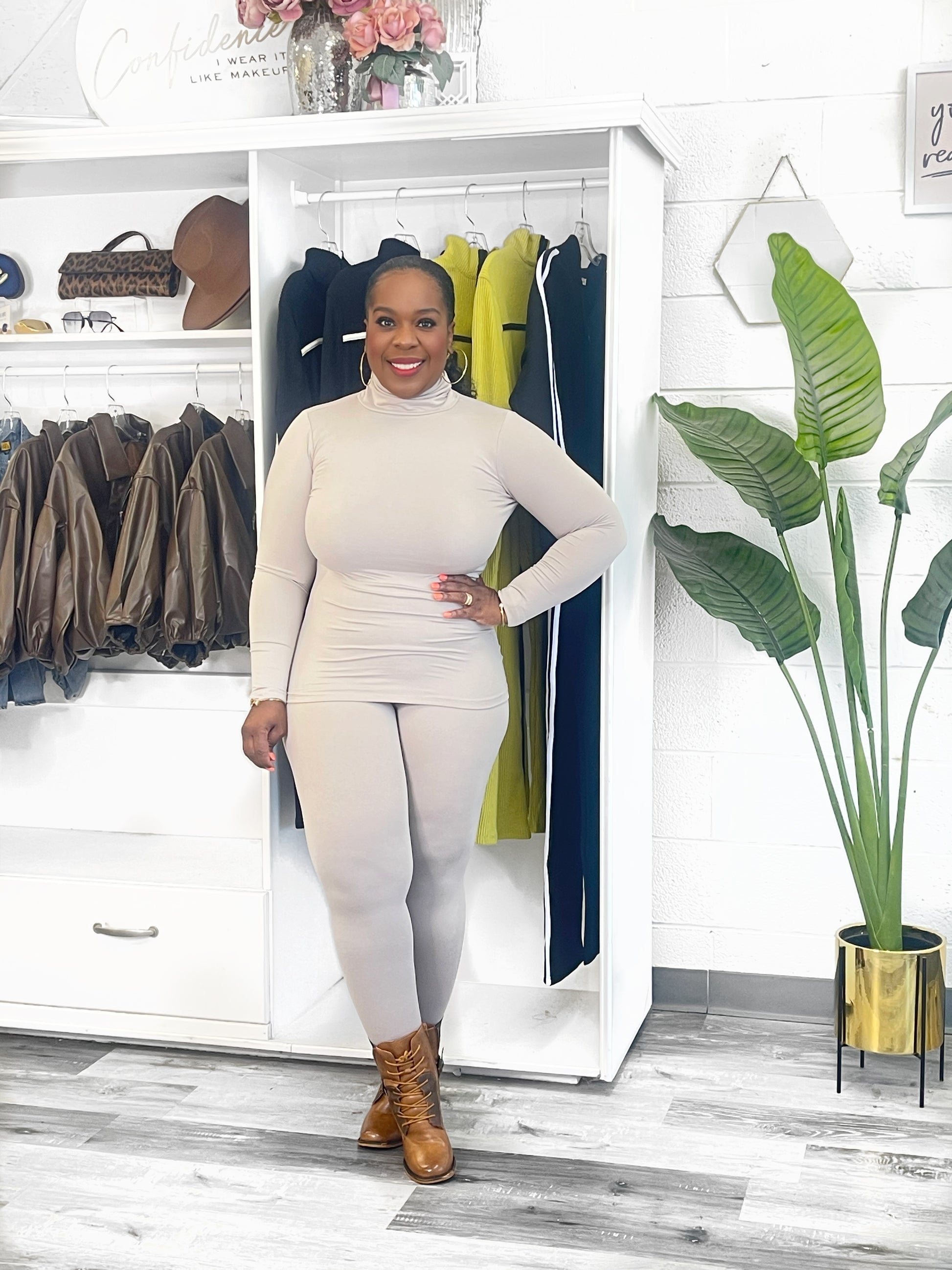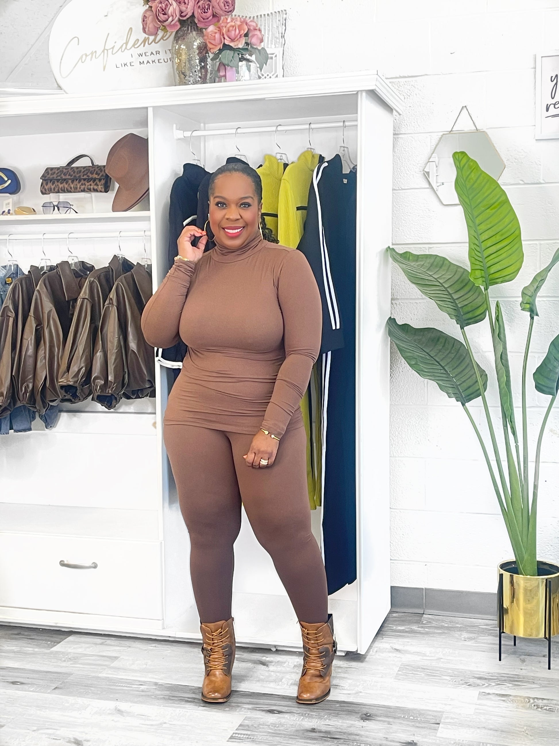 This set is stylish, soft, stretchy, and cozy, the perfect chic two piece mock set for all your plans. Brushed microfiber combines with buttery-soft materials to keep you looking great and feeling comfy! This is the loungewear that dreams are made of! Grab our cute ponchos, or your favorite blazer, denim jacket to spice up your look with these sets.