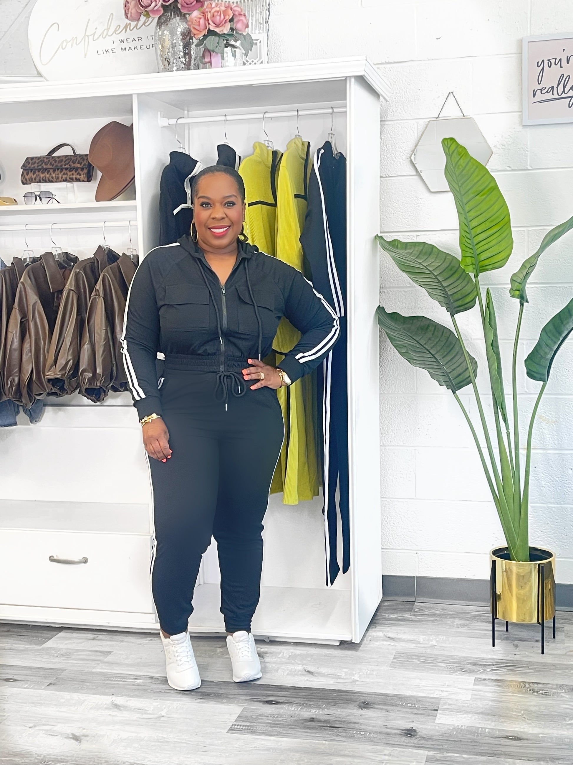 Elevate your casual game with the Fly Girl set! This is effortless style. This French terry matching set features a cropped zip-up hoodie jacket with side stripes, front pockets, and drawstring details, paired with matching jogger pants complete with an elastic waistband and side stripe accents. Perfect for lounging, running errands, or making a statement, this set delivers comfort without compromising on that put-together vibe. Mix, match, or wear together—you're covered either way.