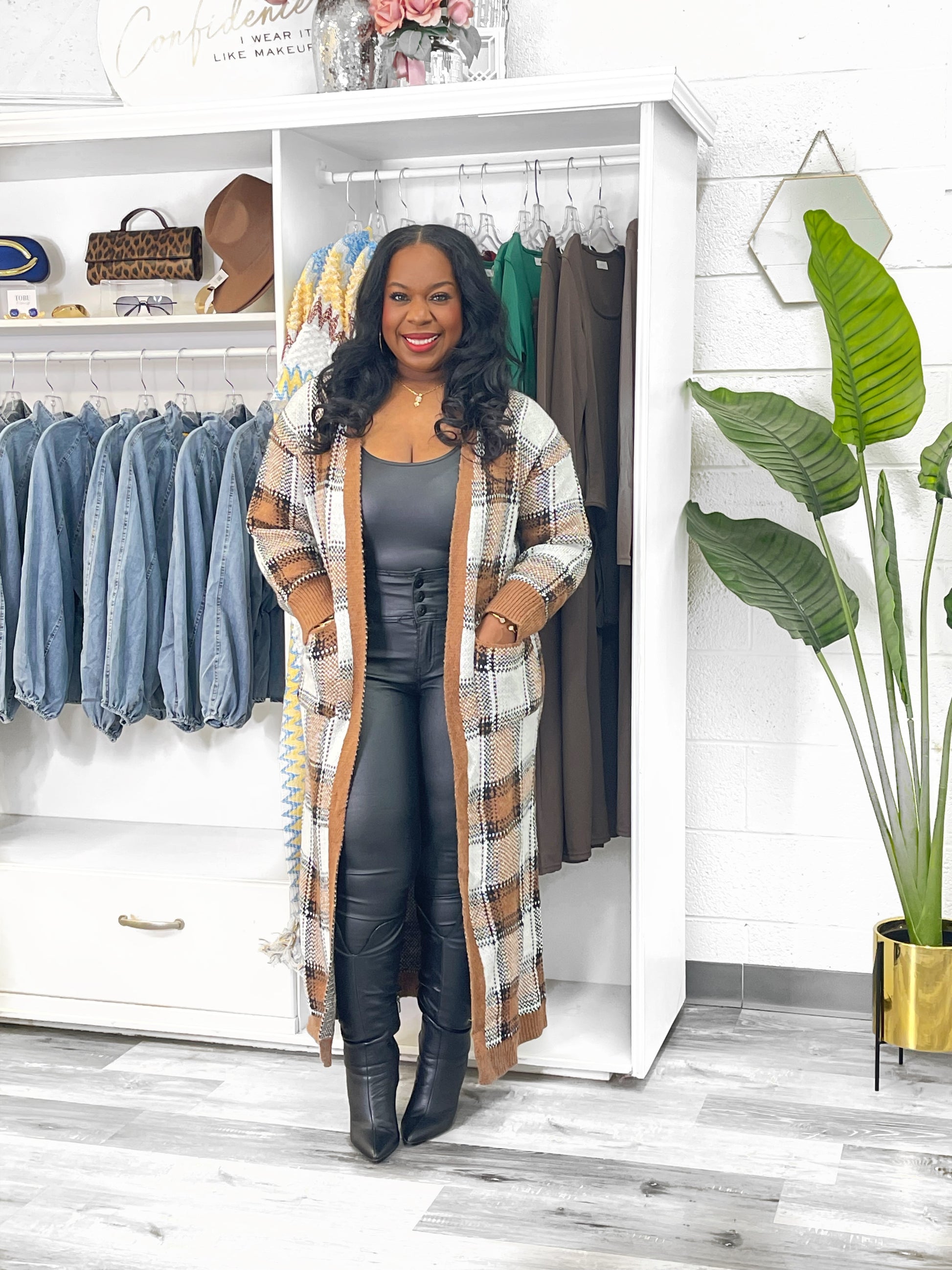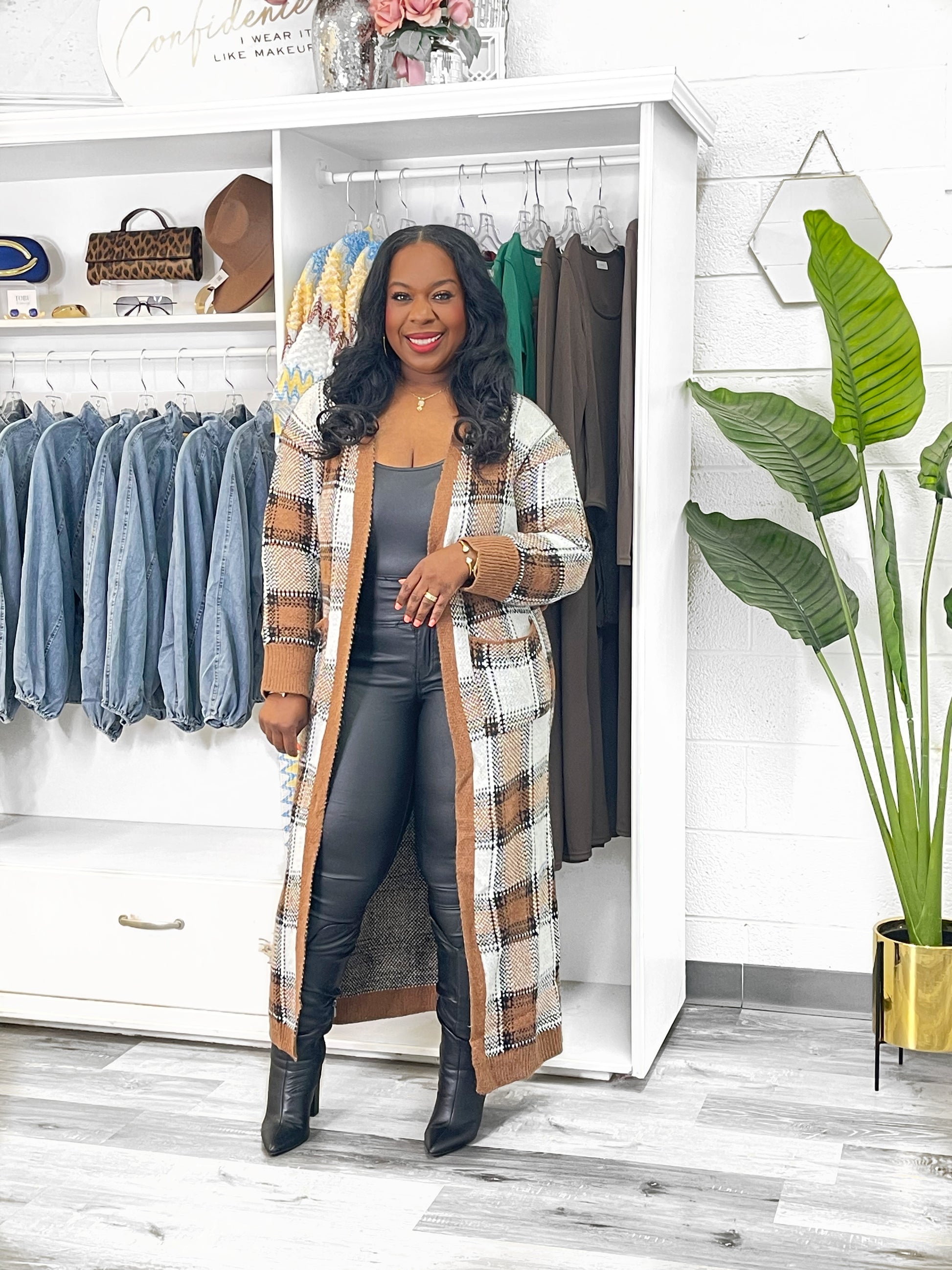 Cozy up with the Kayla plaid cardigan! This playful open-front piece features pockets and a belted waist, making it as cute as it is comfortable. Perfect for adding a stylish, fun layer to your day.