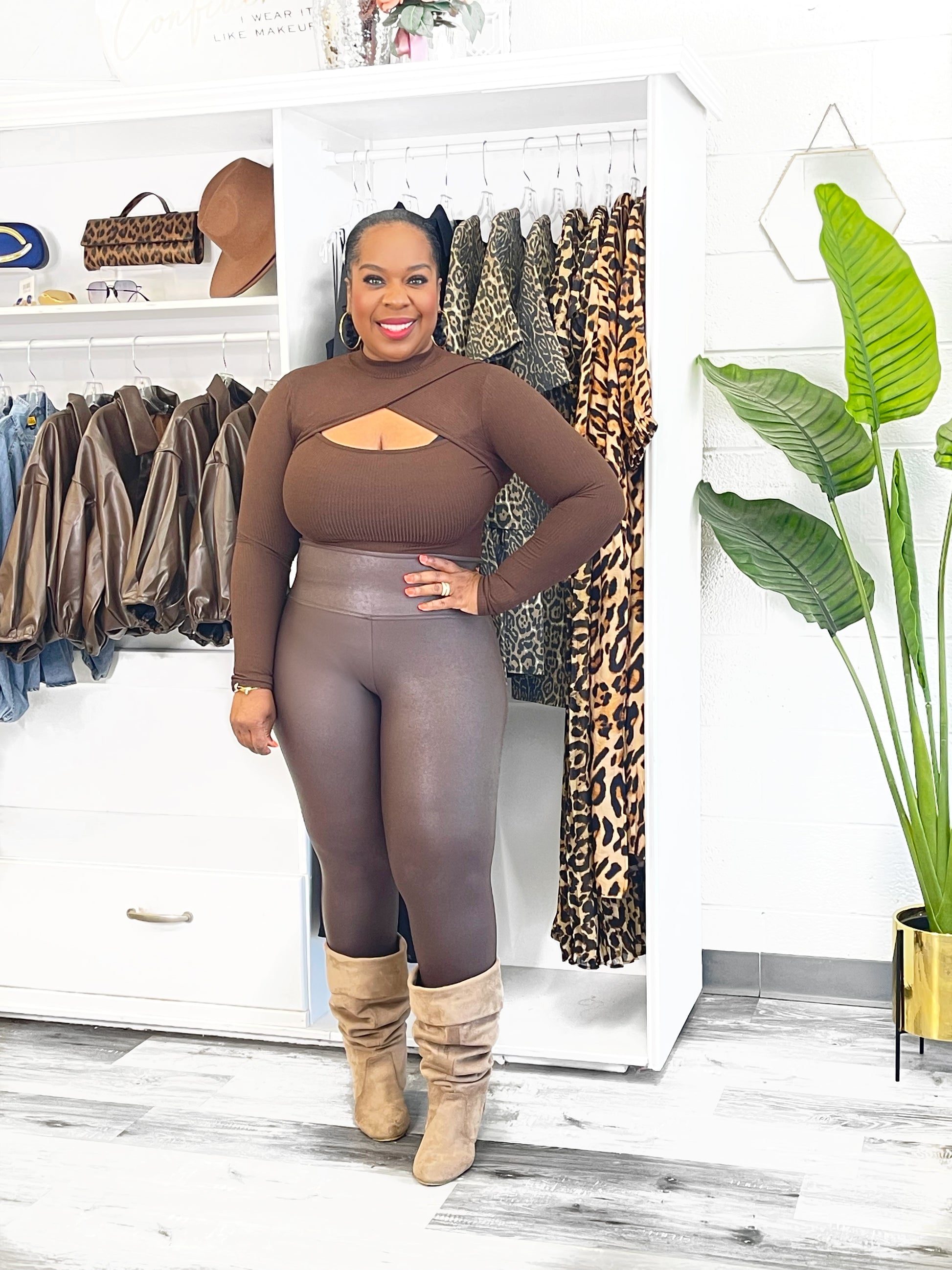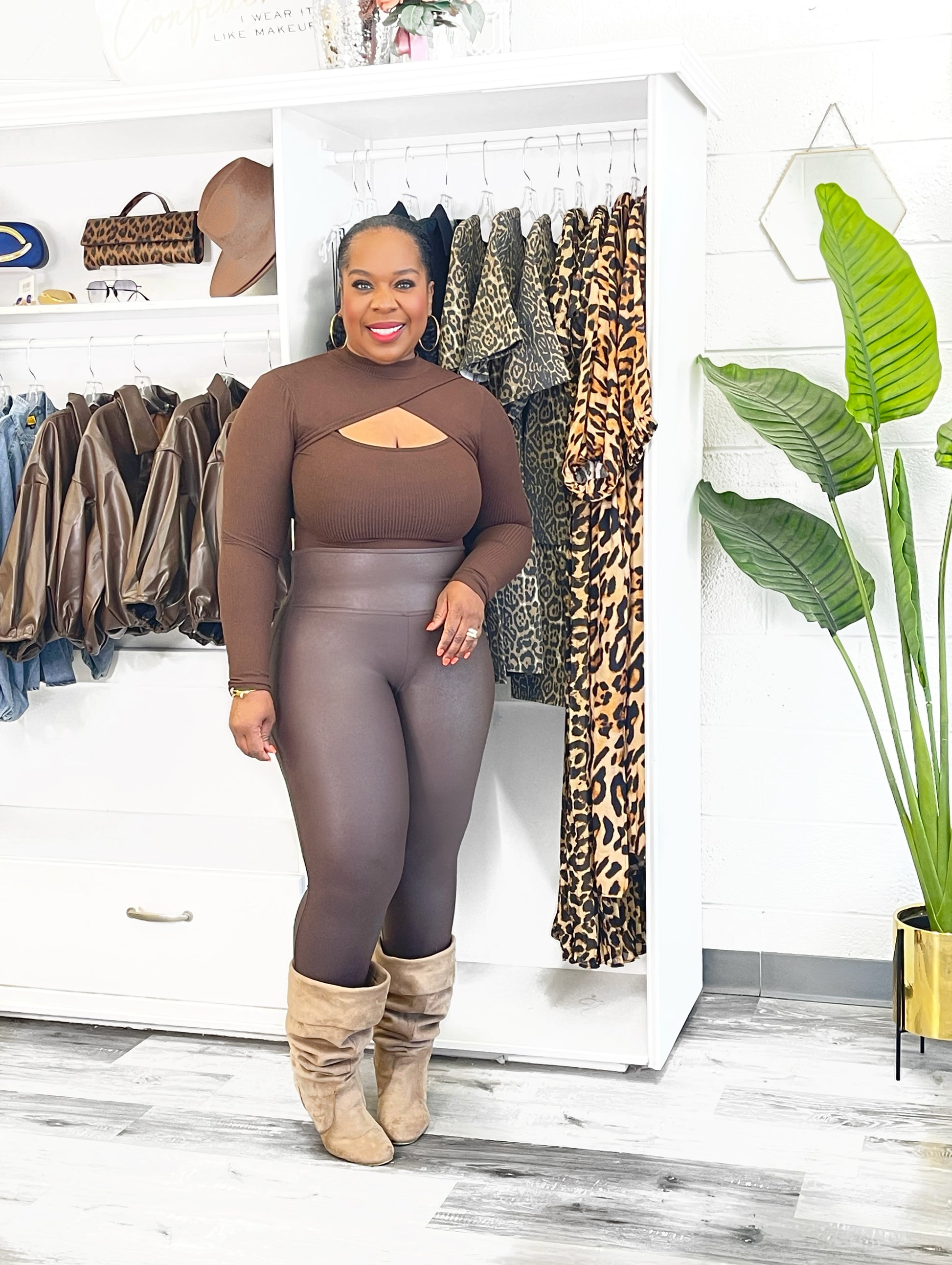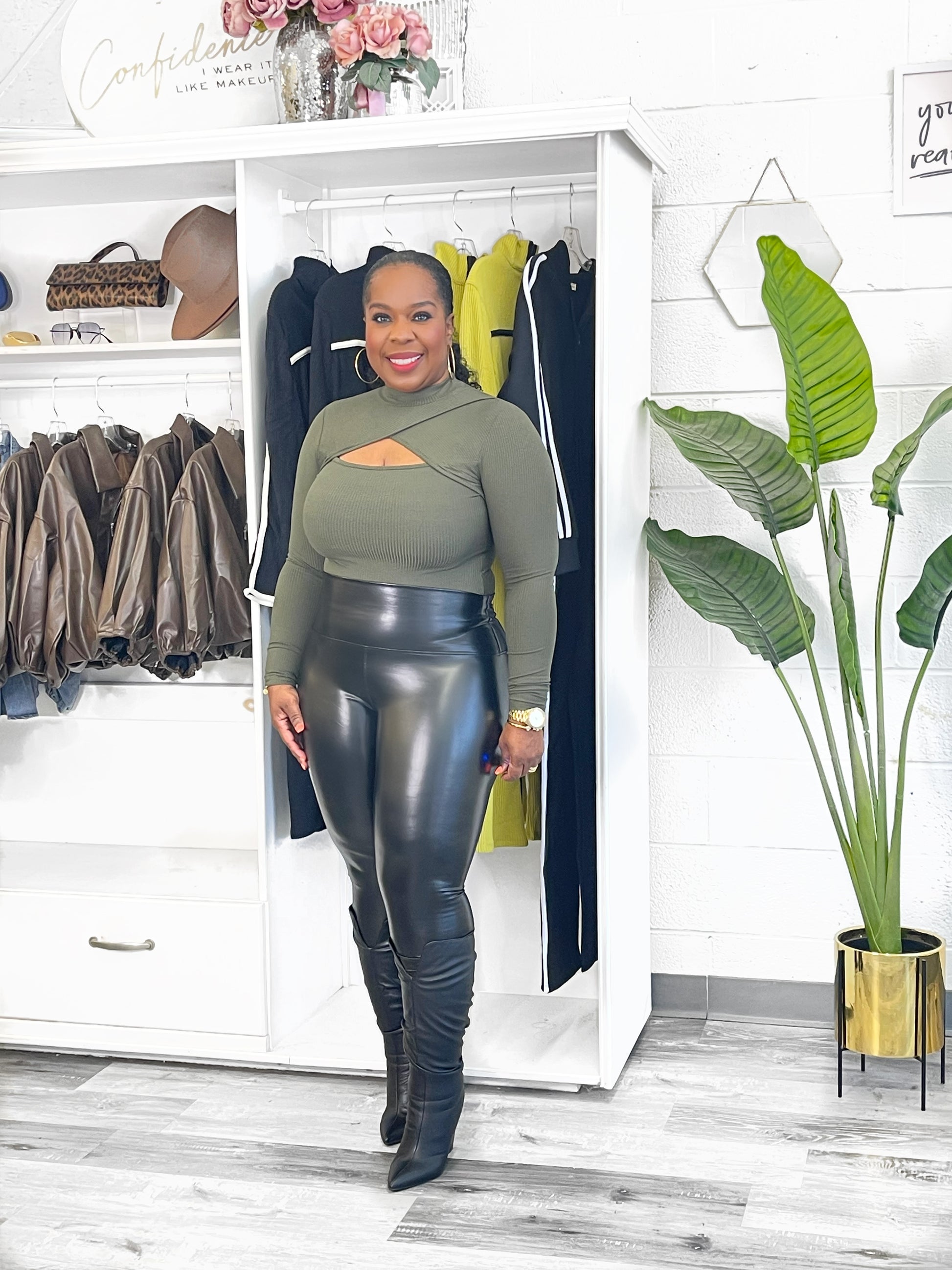 Make a statement with the Kristy bodysuit! Where bold cutouts meet effortless style. This fitted long sleeve piece features a stretchy ribbed knit that sculpts and flatters, while the daring front cutout adds serious edge.