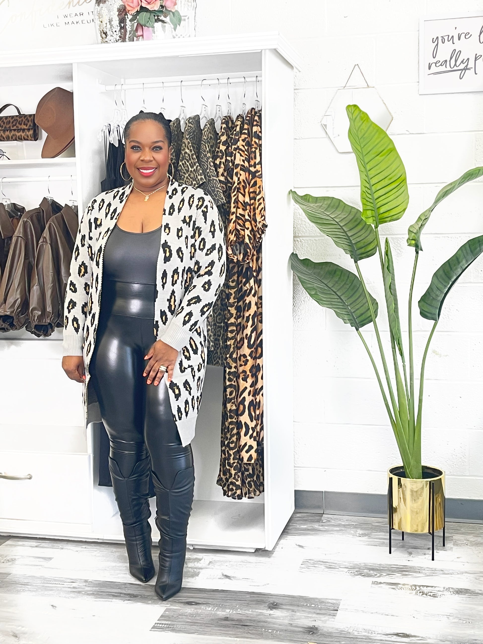 Layer up in style with the Natalie! This long-length piece features a classic animal print that pairs effortlessly with basics or bold pieces alike. Cozy knit fabric keeps you warm while the relaxed fit ensures all-day comfort. Perfect for throwing over dresses, tees, or sweaters, the Natalie is your go-to for that effortlessly chic look that says you woke up like this—even if you didn't.