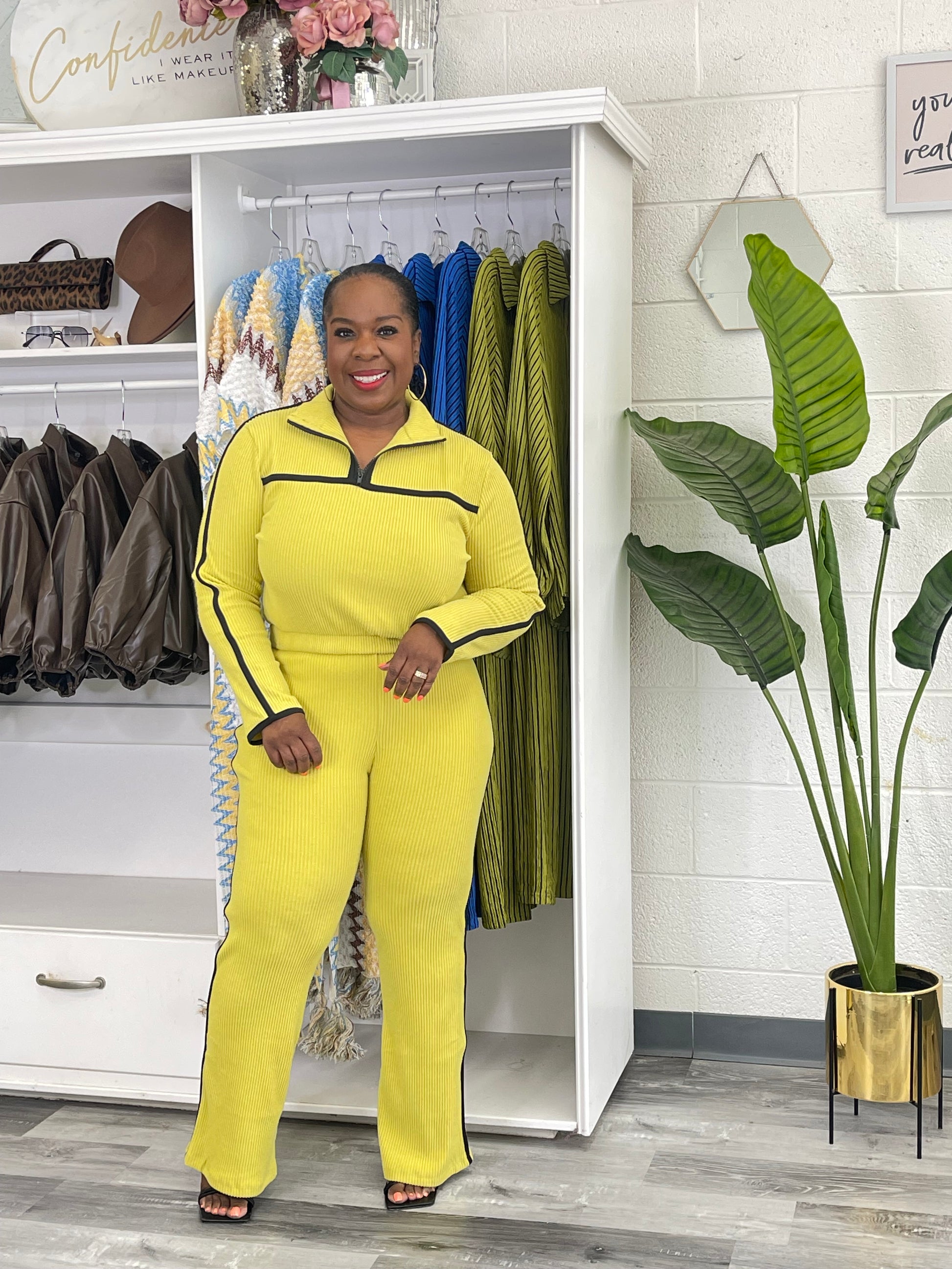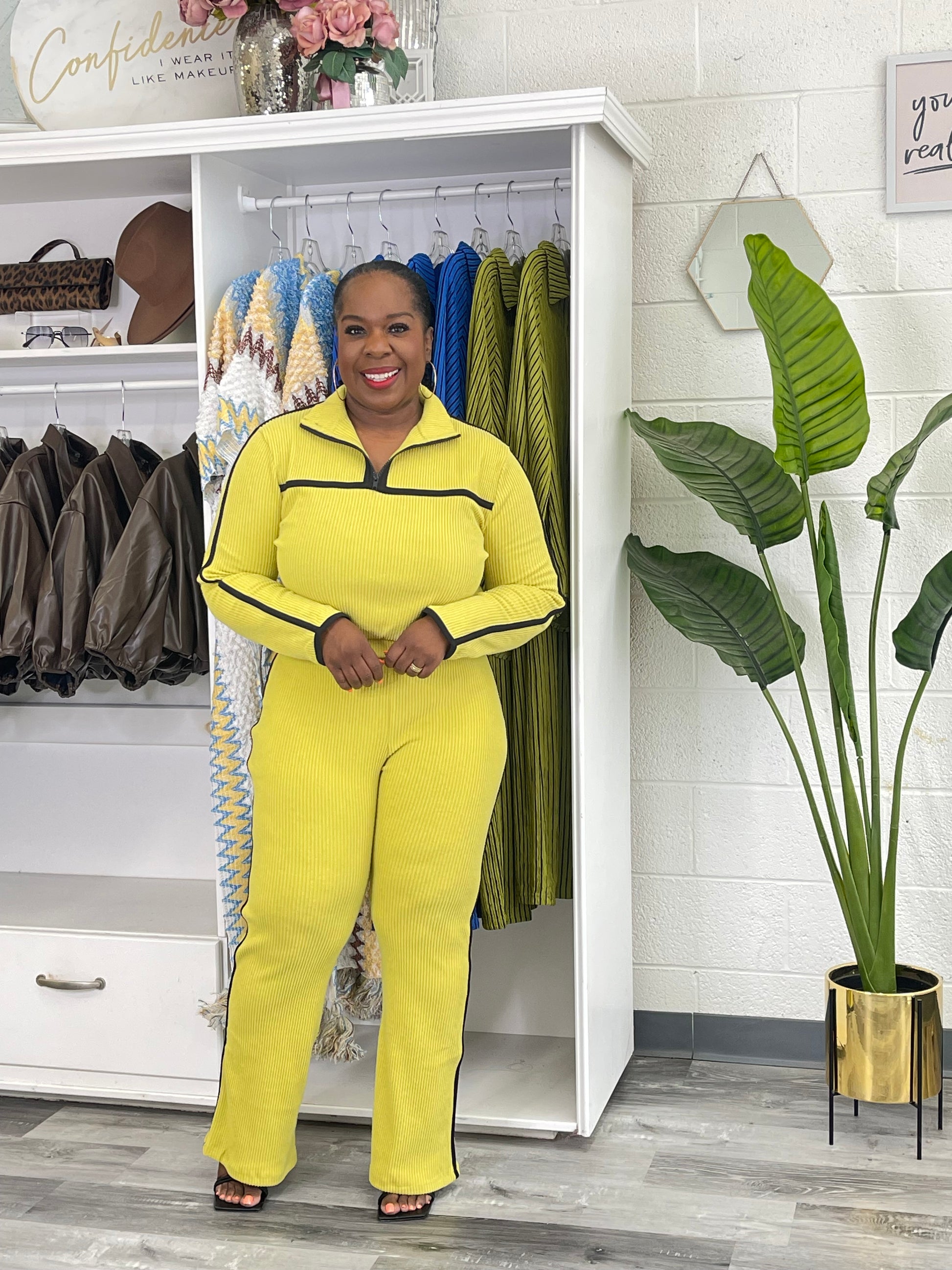 Get into Raven! A cozy two-piece set that's all about comfort meets style. The long sleeve top features a mock neck, half-zip design, and eye-catching stripe detailing with rib 4x4 fleece for that perfect soft feel. Pair it with the matching wide-leg pants, complete with elastic waistband and coordinating side stripes for a put-together look that feels like lounging. Effortless, playful, and ready for anything from coffee runs to casual hangouts. Dress her up or down!
