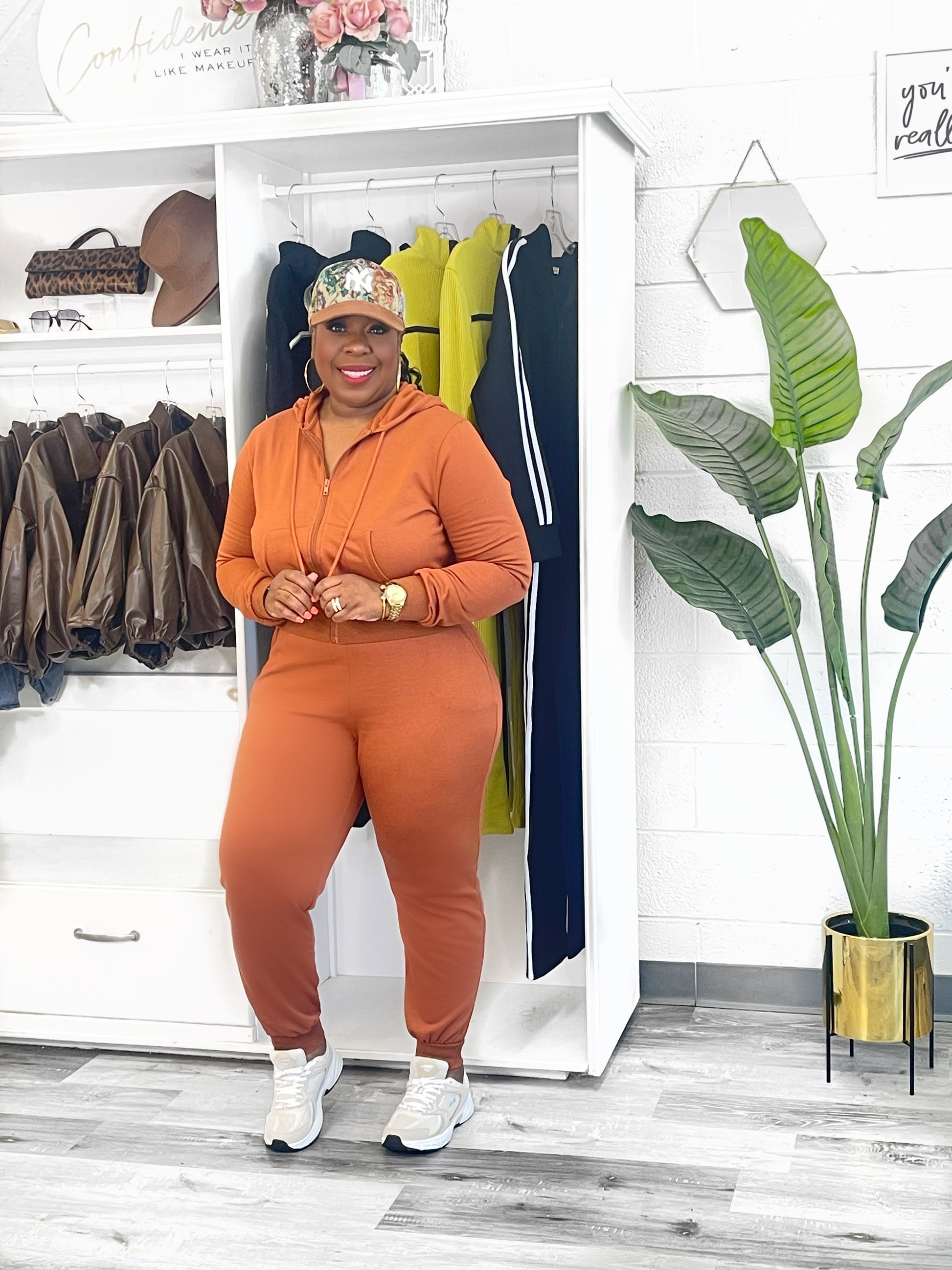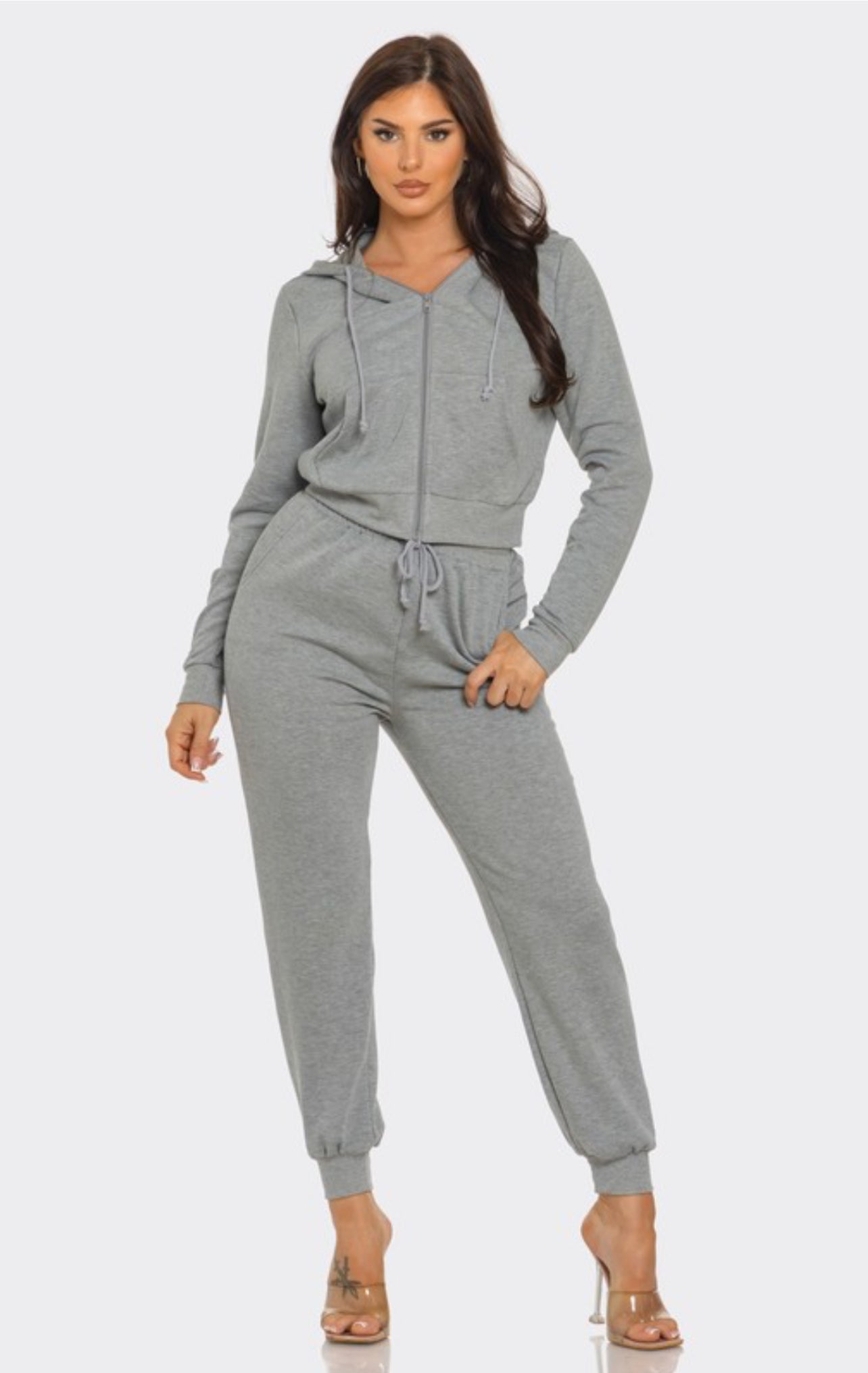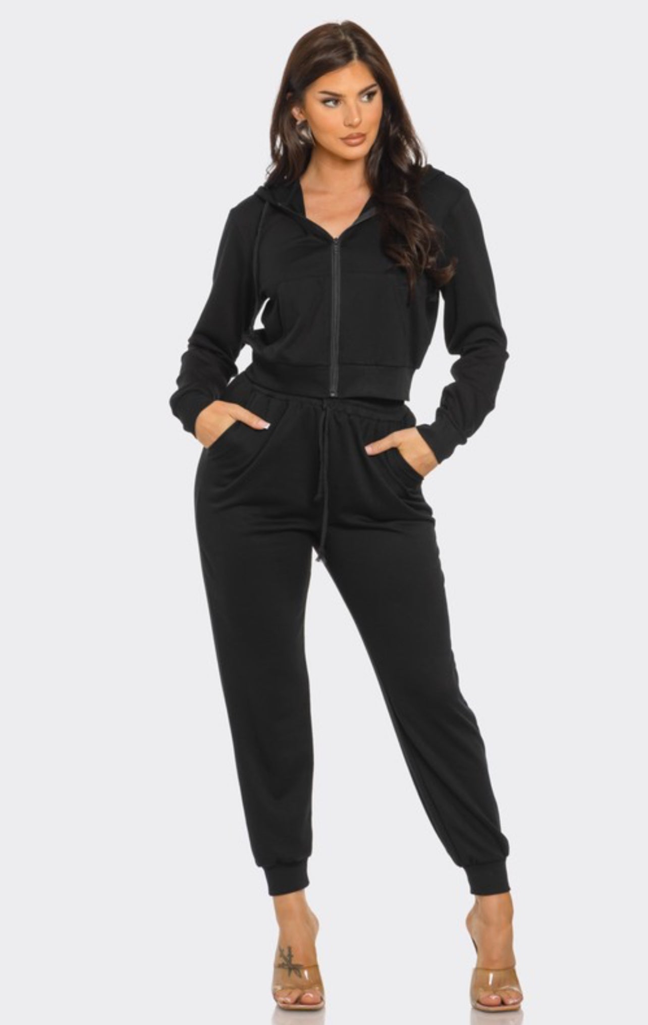 Elevate your chill-out game with The Weekend—a cozy two-piece set, The cropped hoodie jacket features soft French terry fleece, a front zip for easy layering, and side pockets Pair it with matching jogger pants complete with an elastic waistband, drawstring tie, and side pockets for that perfectly put-together loungewear look. Perfect for lazy Sundays, basketball games, or pretending you have your life together.