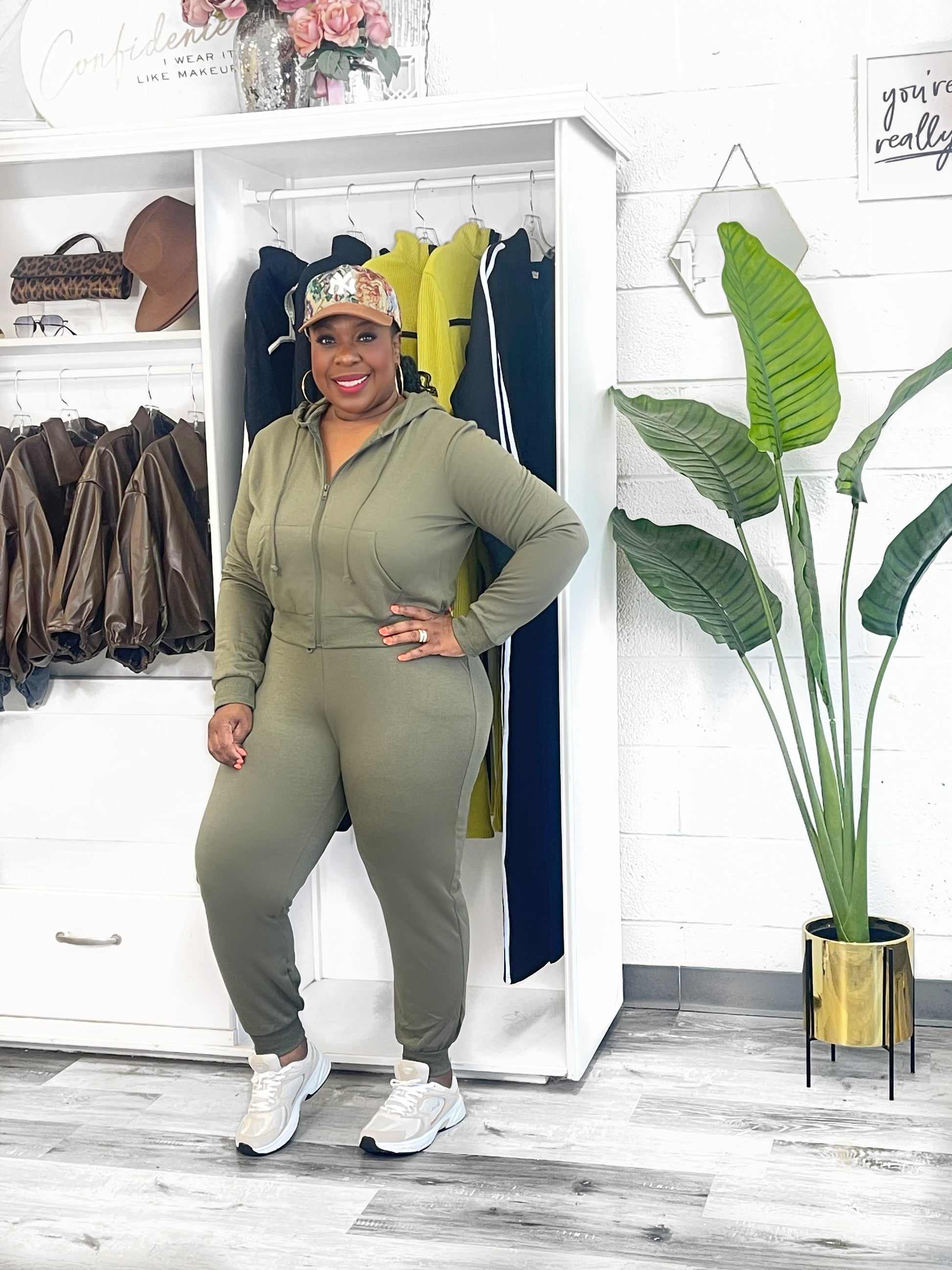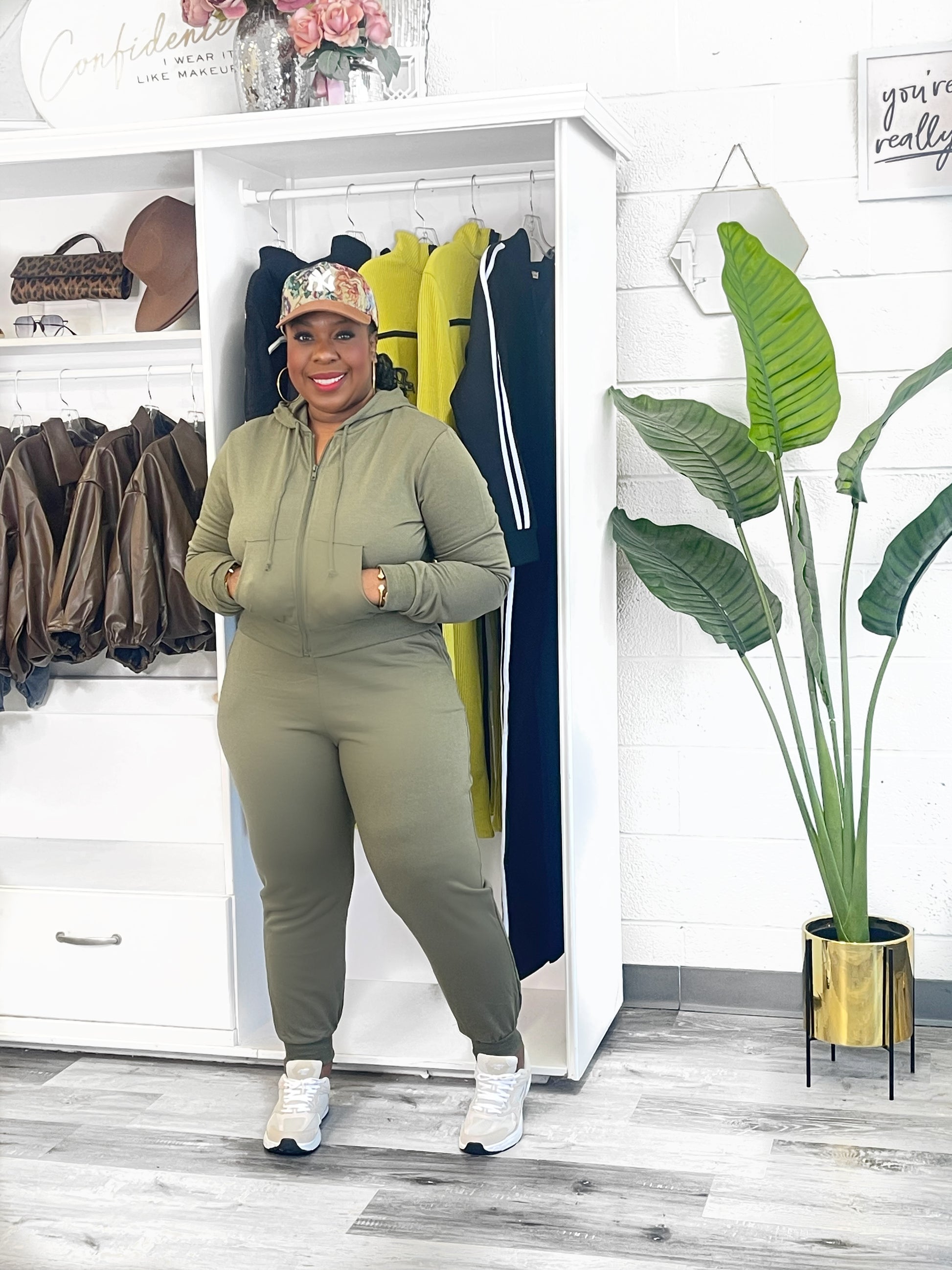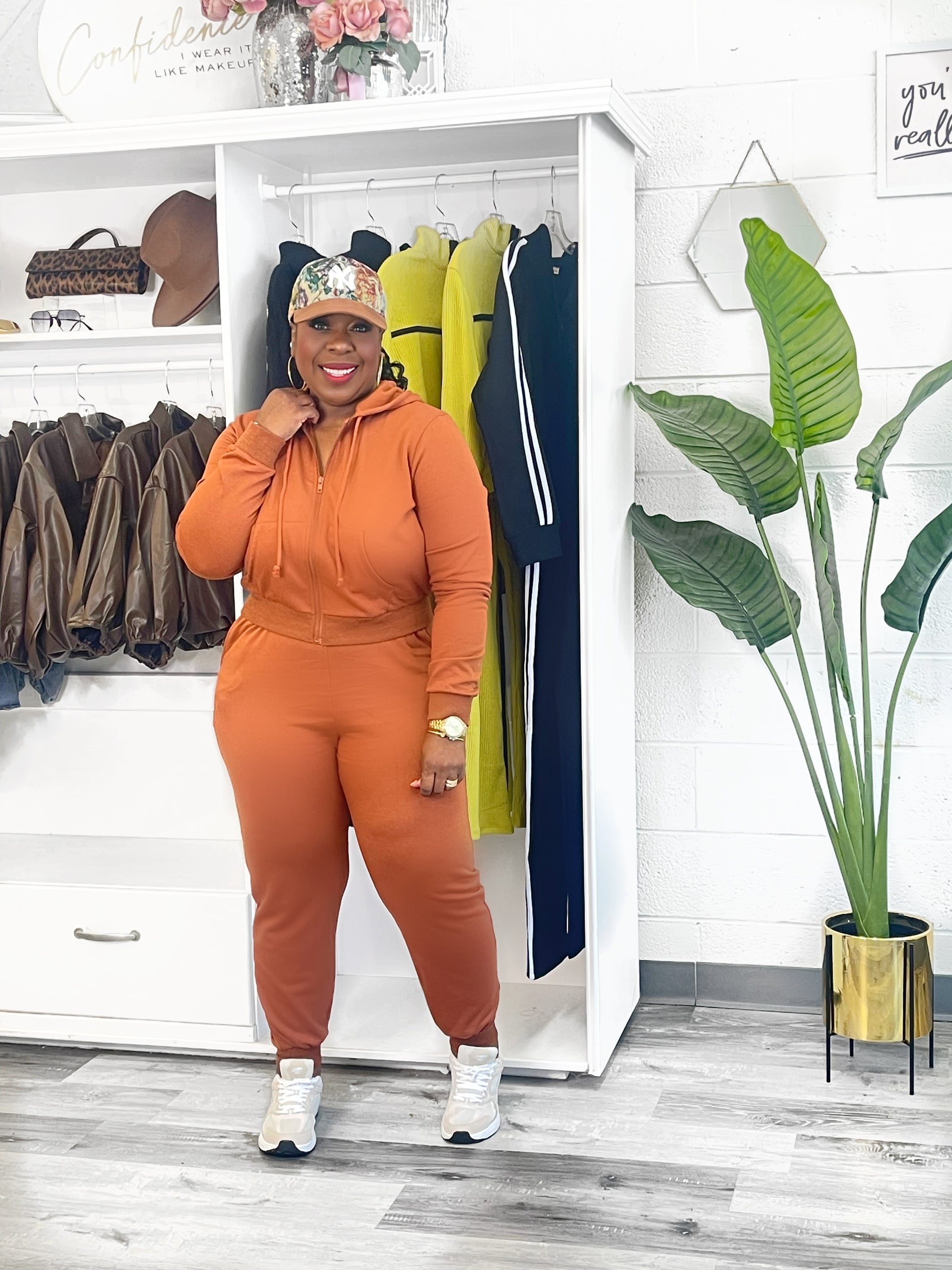 Elevate your chill-out game with The Weekend—a cozy two-piece set, The cropped hoodie jacket features soft French terry fleece, a front zip for easy layering, and side pockets Pair it with matching jogger pants complete with an elastic waistband, drawstring tie, and side pockets for that perfectly put-together loungewear look. Perfect for lazy Sundays, basketball games, or pretending you have your life together.