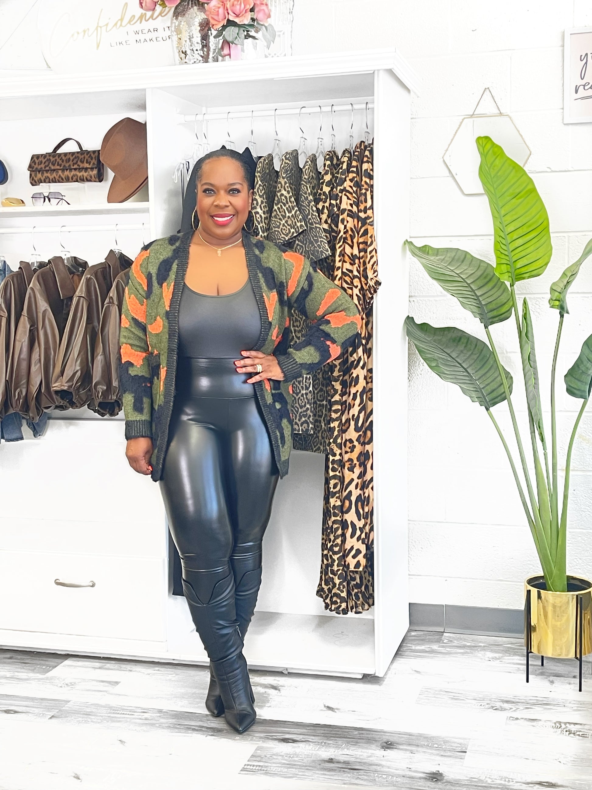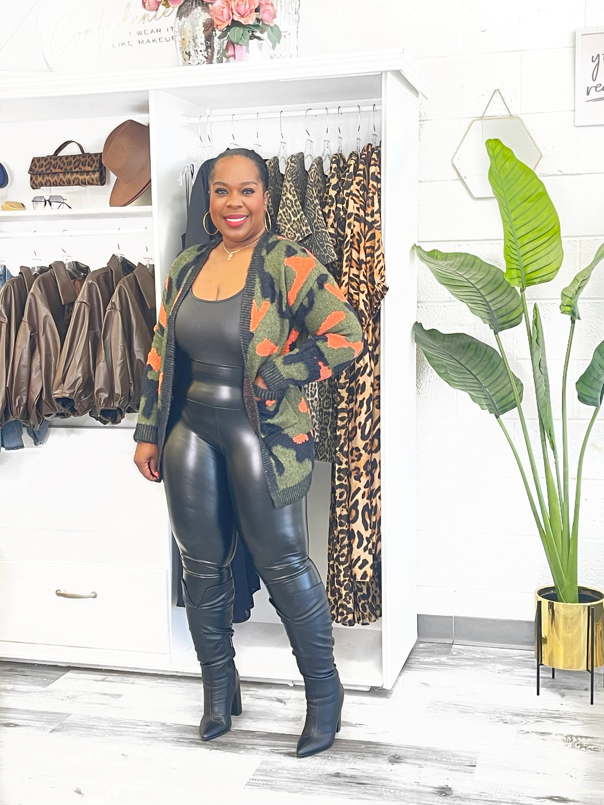 Meet Toya—your new go-to layer for turning heads. This bold camo cardigan sweater rocks a vibrant orange hue that refuses to blend in! Whether you're layering over basics or wearing it solo, Toya brings that perfect mix of edge and comfort. Throw it on and own the room.