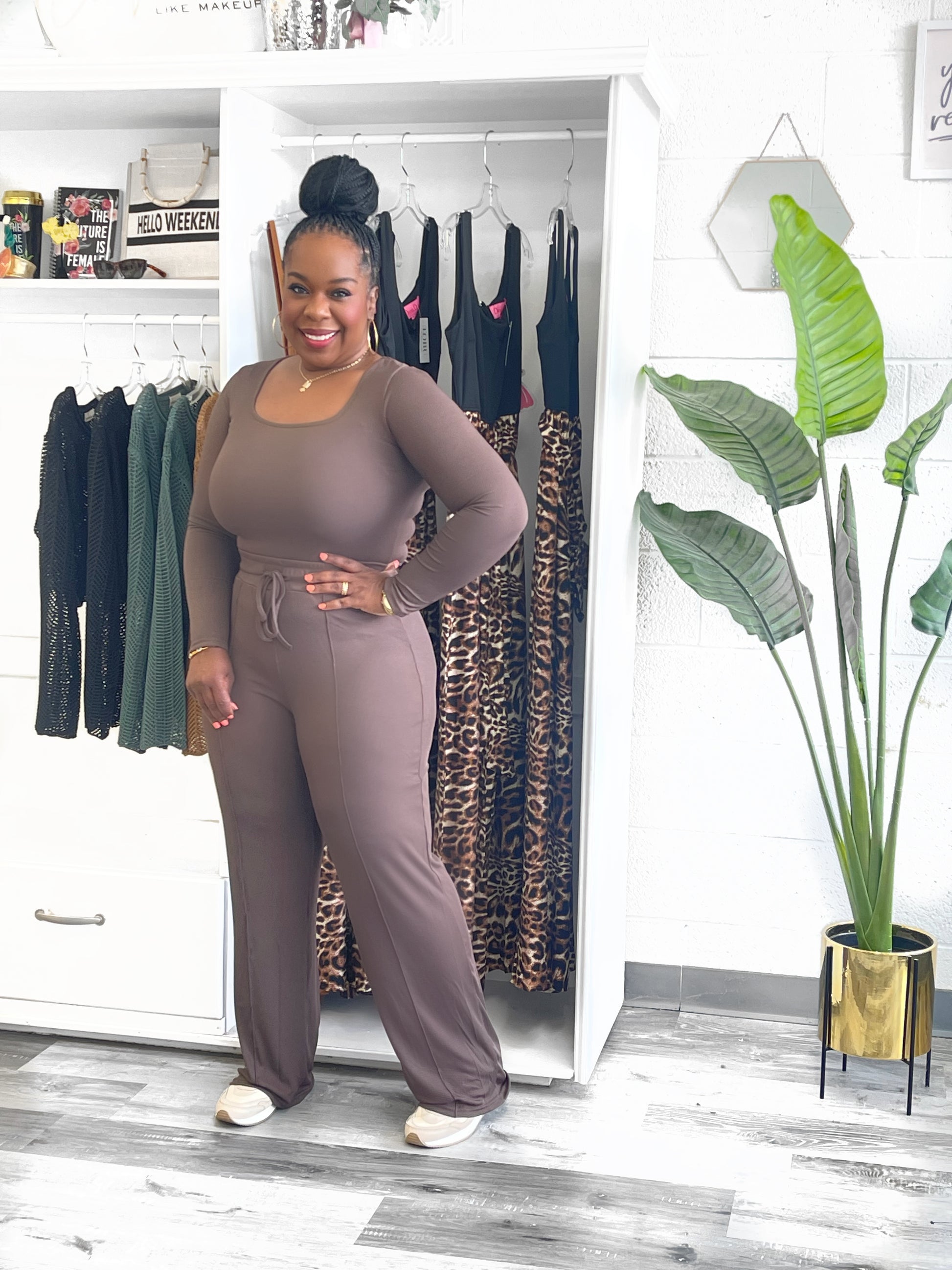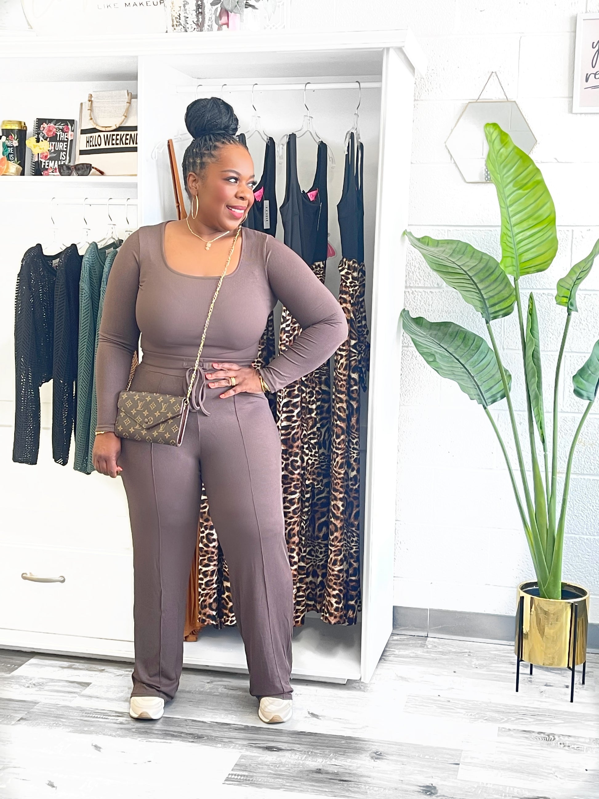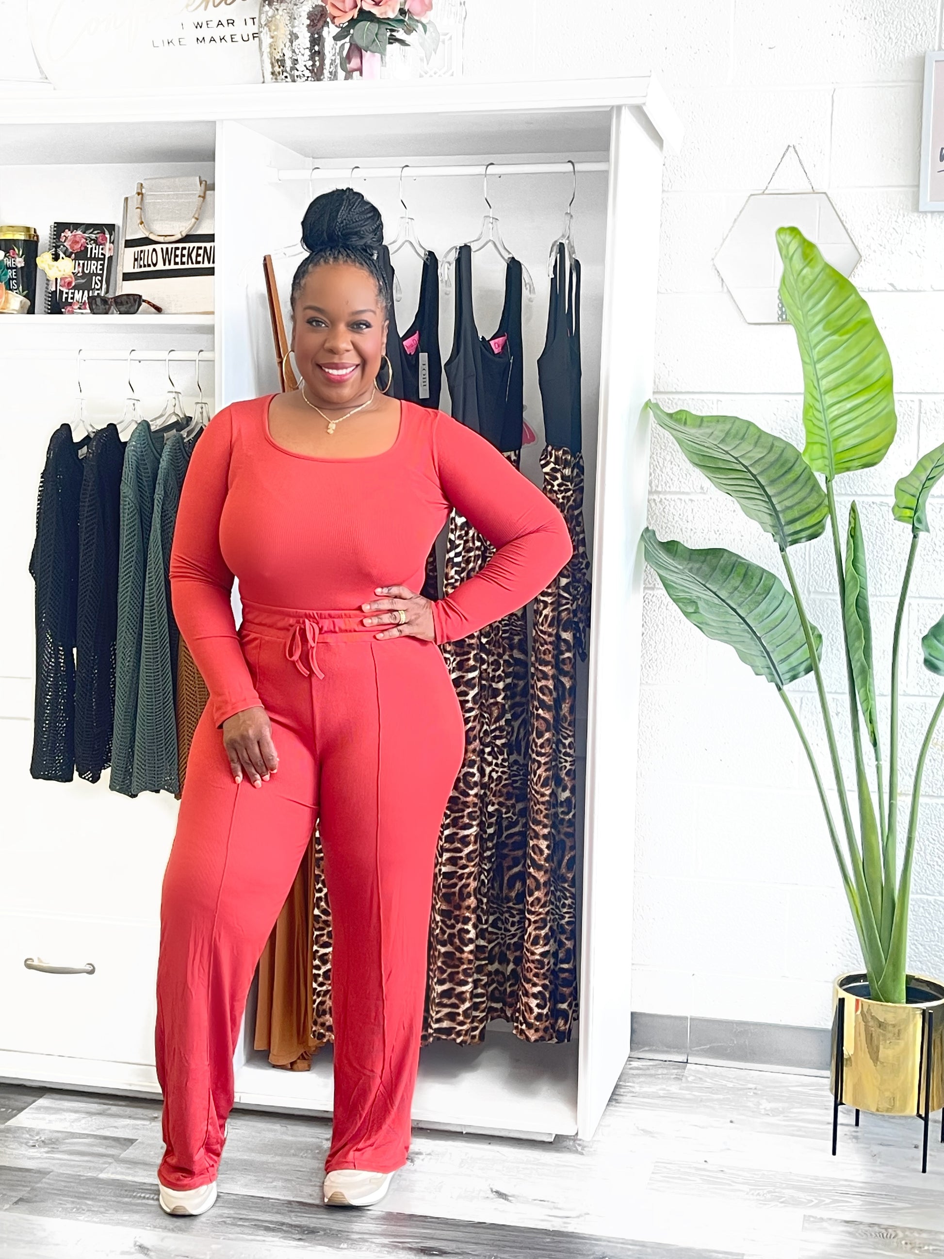 Elevate your everyday style with the Yasmine set! It's a playful set featuring a long sleeve ribbed bodysuit with a chic square neck and wide-leg pants. Simple yet stylish, this set can be dressed up or down. Perfect for lounging or stepping out with ease. Embrace effortless cute with a touch of fun!